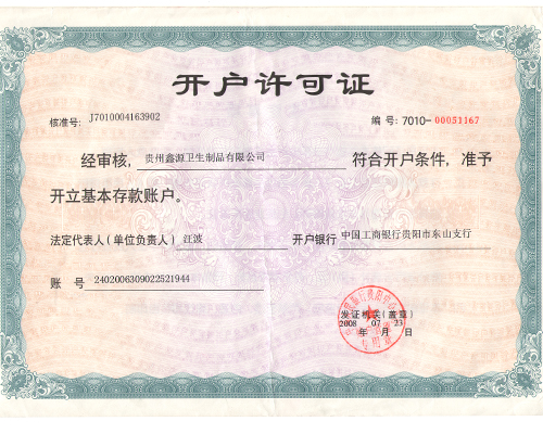 名 称:开户许可证