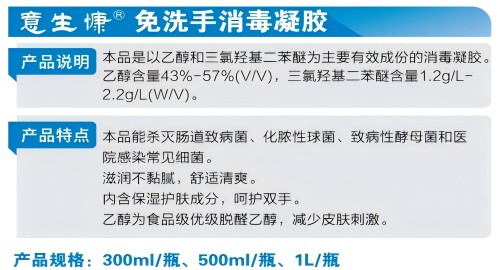 名 称:意生慷®免洗手消毒凝胶