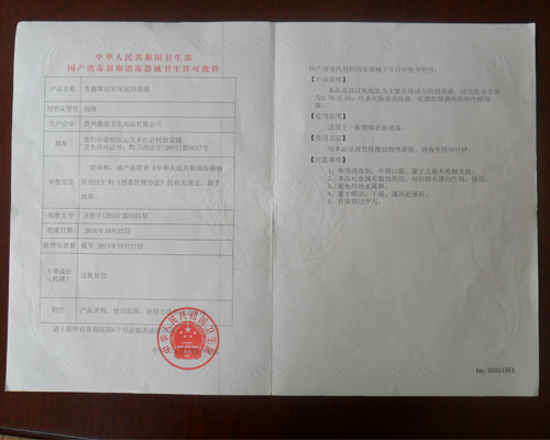 名 称:国产消毒剂和消毒器械卫生许可批件